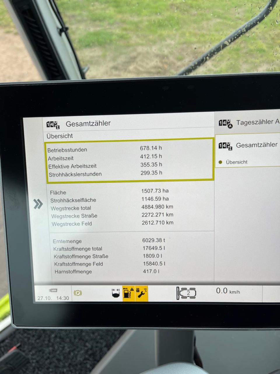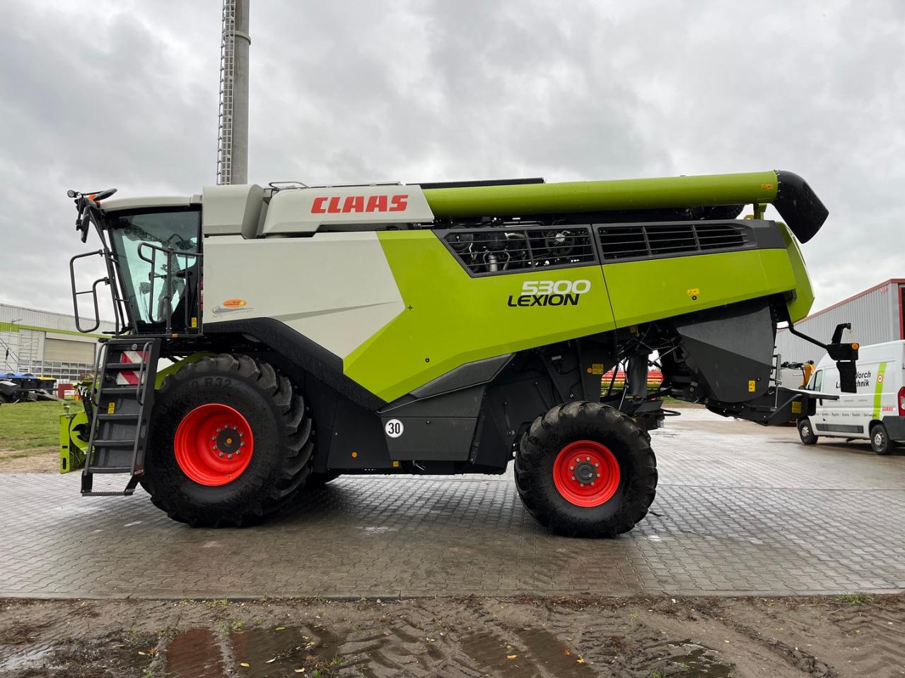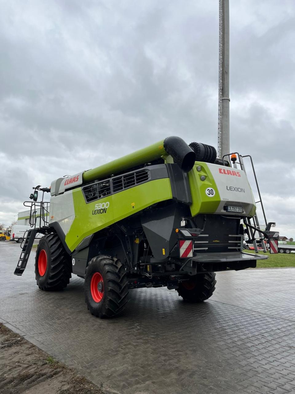 Beschreibung:gebrauchter Mähdrescher Claas Lexion 5300 mit Laser Pilot links Auto Contour Anhängekupplung Schneidwerksbremse 3 D Reinigung Bereifung 800/70R32 500/85R24 30 km/h MB Motor mit 313 PS Klimaautomatik Radio CEBIS Terminal Quantimeter Streublechverstellung hydraulisch Wurfrichtungsanpassung, automatisch Strohhäcksler Schneidwerk Claas Vario 7,70m Nr. 52815371 Transportwagen Nr.52013362 Baujahr 2022 Motorstunden 678 Trommelstunden 412 Hektar gearbeitet 1507 Tracking